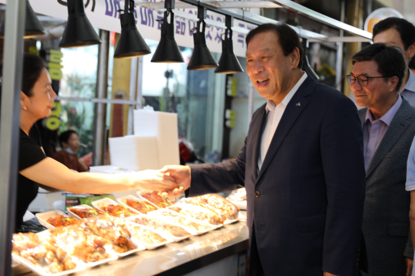 더불어 온라인 쇼핑몰과 대형마트와의 경쟁 속에서도 열심히 장사에 매진하는 전통시장 상인들과 함께 시장을 방문한 시민들과도 명절 덕담을 나누며 훈훈한 온기를 나눴다.