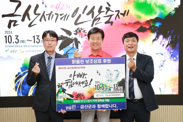㈜선양소주는 9월 대전‧충남권을 중심으로 판매되는 소주 20만 병의 보조상표에 금산세계인삼축제 홍보문구를 넣기로 했다.