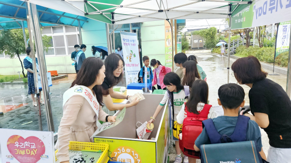 이번 기부데이에 학생들이 가져온 생활용품, 학용품 등은 논산사랑 푸드뱅크, 푸드마켓에서 지원하는 물품들과 함께 지역사회 사회복지시설에 꾸러미로 전달된다. 동성초 환경사랑 학생동아리는 기부행사와 함게 탄소 중립 실천 캠페인도 함께 진행했다.