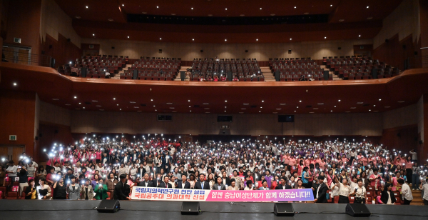 아울러 도내 여성단체가 강력한 의지를 담아 ‘국립치의학연구원 천안 설립’, ‘국립공주대 의과대학 신설’ 등 지역 현안 해결에 함께하겠다는 결의를 다지는 퍼포먼스 행사도 펼쳤다.