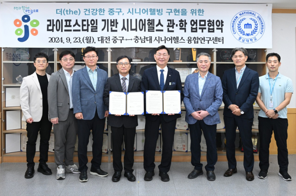 [충청뉴스 박영환 기자] 대전 중구는 지난 23일 충남대학교 시니어헬스 융합연구센터(센터장 정혜광)와 지역사회와 함께하는 시니어헬스 관·학 협력 체계 구축을 위한 업무협약(MOU)를 체결했다고 밝혔다.