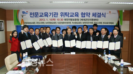 대전지방보훈청(청장 신영교) 제대군인지원센터는 10일 본청 대회의실에서 한국교육기부협회 등 8개 기관과 '제대군인 전문교육기관 위탁교육과정 협약식'을 체결했다고 밝혔다.