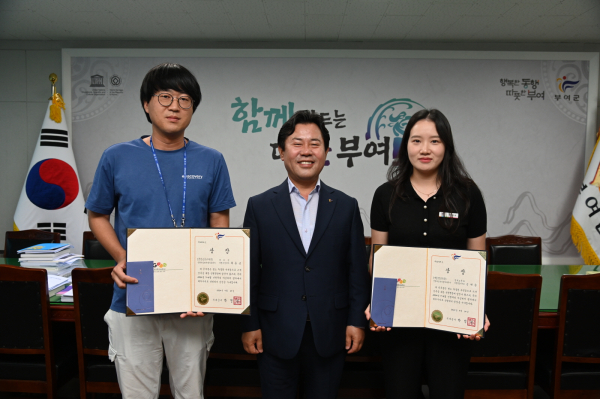 [충청뉴스 부여 = 조홍기 기자] 부여군(군수 박정현)은 지난 23일 7~8월 민원처리 마일리지 우수공무원 2명을 선발해 표창했다고 밝혔다. 부여군에서는 두 달에 한 번 민원처리 우수자를 선발해 상장을 수여하고 있다.