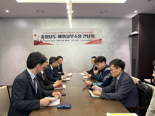 도는 25일 덕산 스플라스 리솜에서 ‘2024 충남도 해외사무소 초청 바이어 수출상담회’를 위해 해외바이어들을 인솔하고 입국한 인도·베트남·인도네시아·독일·일본 해외사무소장들과 소통간담회를 개최했다고 밝혔다.
