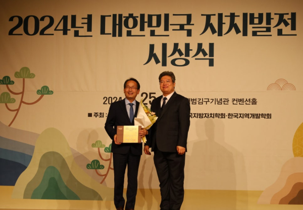 25일 백범김구기념관에서 열린 ‘2024 대한민국 자치발전 대상’은 자치분권과 지역 발전을 위한 뛰어난 공헌을 인정하는 상으로, 지방자치제도의 지속적 발전과 지방 분권 강화를 위해 기여한 사람을 선정해 수여하게 된다.