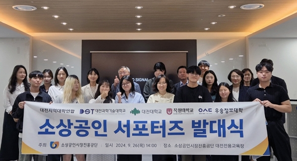 [충청뉴스 이성현 기자] 대전과학기술대학교가 대전대, 목원대, 우송정보대학 등 대전권 4개 대학과 소상공인시장진흥공단 대전북부센터와 연계한 소상공인·전통시장 활성화를 위한 대학생 서포터즈 발대식을 실시했다고 밝혔다.
