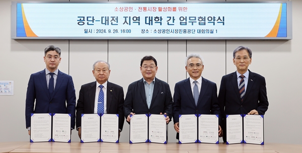 [충청뉴스 이성현 기자] 대전과학기술대학교는 소상공인시장진흥공단, 대전과기대, 대전대, 목원대, 우송정보대학 간 지역대학 연계 소상공인·전통시장 활성화를 위한 업무협약을 체결했다고 밝혔다.