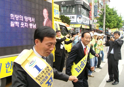 열린 우리당의 정동영 당의장은 "국민들에게 내놓은 각 자치단체 후보들은 이 시대 각지역에서 선택할 수 있는 최고의 인물들"이라며 "검증된 후보인 염홍철 후보를 지지해달라"고 호소했다.