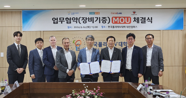 [충청뉴스 이성현 기자] 한국폴리텍IV대학 대전캠퍼스는 ㈜크래비스, ㈜코랄링크, 독일 CODESYS사와 'Fieldbus, Automation'분야 전문인력 양성과 맞춤 취업 연계를 위한 업무협약 및 실습장비 기증식을 진행했다고 2일 밝혔다.