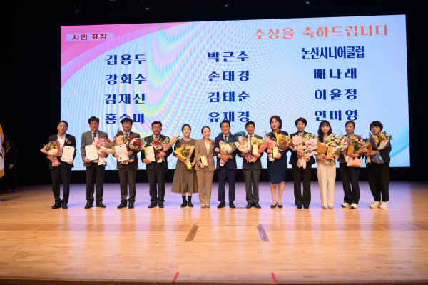 강화수 한국외식업중앙회 논산시지부 사무국장과 손태경 라파 대표가 각각 2024년 식품안전관리사업 유공 및 2024년 농업인 우수 가공품 비즈니스 모델 경진대회 최우수로 도지사 표창을 받았으며, 지역사회 복지발전 및 봉사, 아동복지 향상 기여 등 21명의 시민이 지역발전 유공으로 시장 표창을 수여받았다.