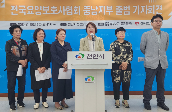 정찬미 전국요양보호사협회장은 7일 천안시청 브리핑실에서 기자회견을 열고 "충남지부는 요양보호사들의 안정적인 고용환경을 구축하고, 근로환경 개선을 위해 적극적으로 활동할 것"이라고 밝혔다.