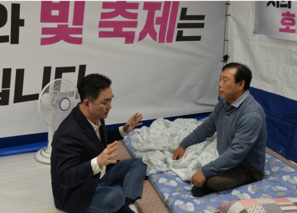 9일 오후 김종민 의원은 최민호 시장 단식 현장을 전격 방문 건강이 걱정되고, 세종시의 산적한 현안을 챙겨 줄 것을 당부했다.
