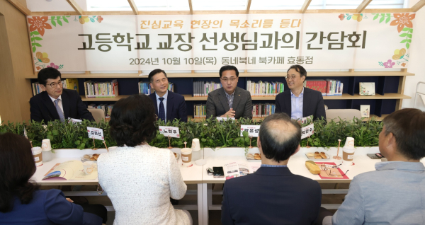 [충청뉴스 박영환 기자] 박희조 대전 동구청장이 ‘교육진심 동구’ 실현을 위해 동네북네 북카페 효동점에서 10일 관내 고등학교장들을 만났다고 전했다.