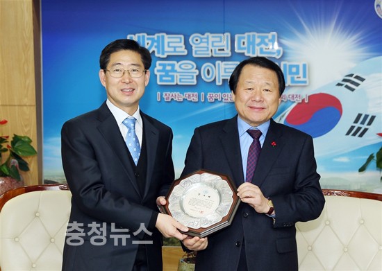 양승조 국회의원(천안 갑)이 정부예산 증액 공로로 대전시로부터 감사패를 받았다. 17일 양승조 의원실에 따르면 천안이 지역구인 양 의원이 이례적으로 대전시로부터 감사패를 받게 된 것은 2013년도 대전시 주요현안사업 해결과 관련 국회 예결위 계수조정소위위원으로 활동한 양 의원의 노력 때문이라고 전했다.