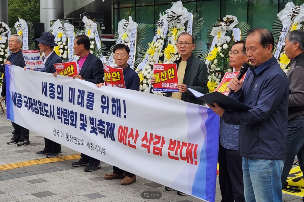 아울러 "전국 이·통장연합회 세종지부는 박람회 및 빛 축제 예산이 전액 삭감되었다는 소식을 접하고 깊은 우려와 실망을 금할 수 없다"고 지적했다.