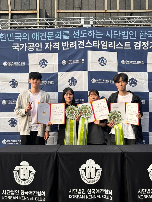 KKC 반려견 스타일리스트 경연대회에 참가한 총 300여명의 인원 중 중부대학교 반려동물학부 ‘그루트’의 신초하(22학번), 김영찬(23학번), 임하리(24학번) 학생이 학생부 램클럽으로 동상을 수상했다.