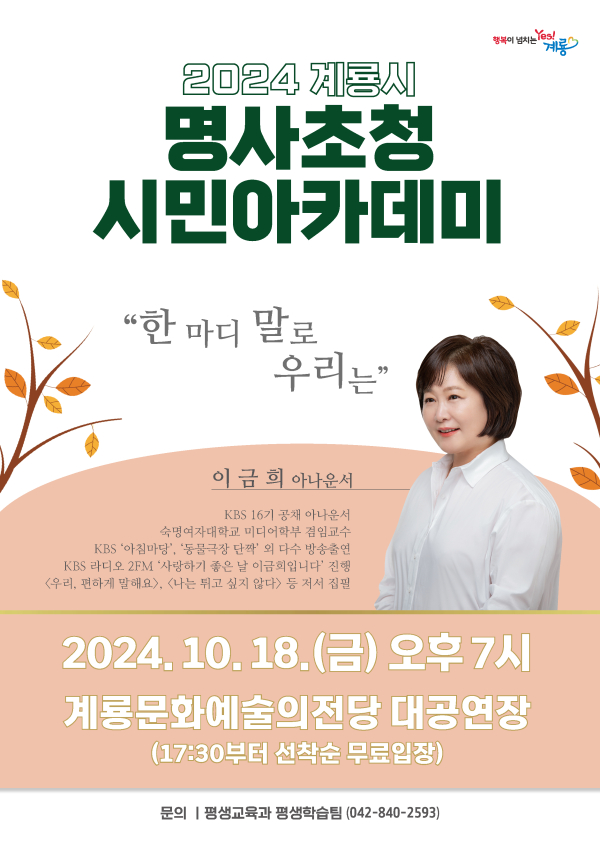 계룡시, 이금희 강사 초청 시민아카데미 열어