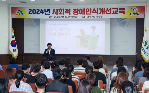 [충청뉴스 박영환 기자] 대전 대덕구는 16일 구청 청렴관에서 공직자 100여 명을 대상으로 ‘사회적 장애인식개선교육’을 실시했다고 밝혔다.
