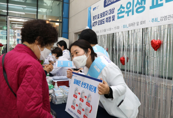 이번 교육은 환자·보호자에게 감염병 예방·관리 중요성을 알리기 위해 지난 21일 병원 외래진료관 입구에서 진행했다.