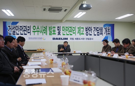 행정중심복합도시건설청(청장 이재홍)은 24일 오후 3시 국립세종도서관 공사현장에서 행복청이 직접 발주․공사 중인 국립세종도서관 등 8개 건축공사현장의 공사관계자들을 대상으로 ‘건설안전관리 우수사례 발표 및 안전관리 제고방안 논의를 위한 간담회’를 개최했다.
