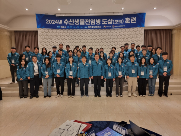 지난 17∼18일 대전에서 진행한 모의 훈련에는 해수부와 국립수산물품질관리원, 지자체 등이 참여해 신속한 초기대응으로 전염병 확산을 막을 수 있도록 기관별 대응체계를 점검했으며, 공동대처 능력을 점검했다.
