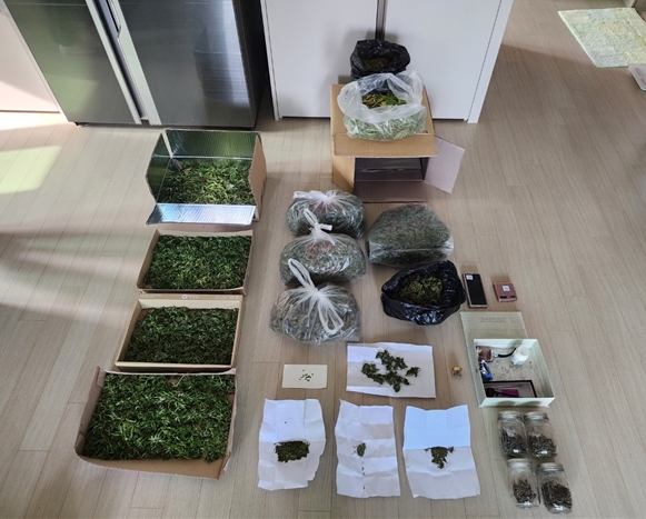 ▸주거지 압수– 건 대마잎 2,293.5그램 종자 57그램, 곰방대 등