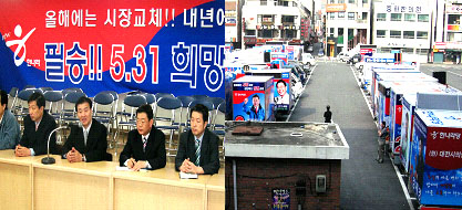 ▲ 한나라당 대전시당 전략회의<좌> 및 주차된 유세차량