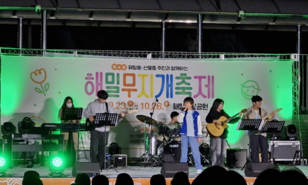 25일에는 해밀동 주민자치프로그램 수강생들의 악기연주를 시작으로 노래, 춤 공연과 관내 학생들의 태권도, 밴드 공연 등이 이뤄져 눈길을 끌었다.