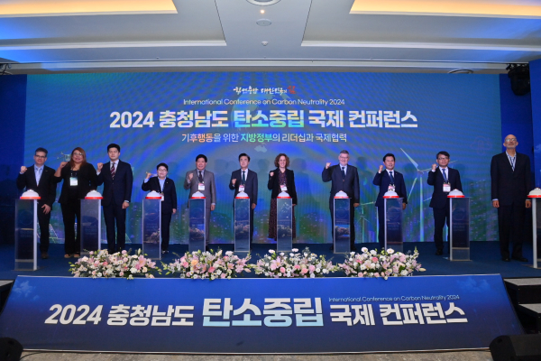 도는 29일 부여 롯데리조트에서 김태흠 지사를 비롯해 이병화 환경부차관, 헬렌클락슨 클라이밋그룹 대표, 로렌스 투비아나 유럽기후재단대표 등 15개국 탄소중립 전문가 1500여 명이 온·오프라인으로 참석한 가운데, ‘2024 충청남도 탄소중립 국제콘퍼런스’를 개최했다.