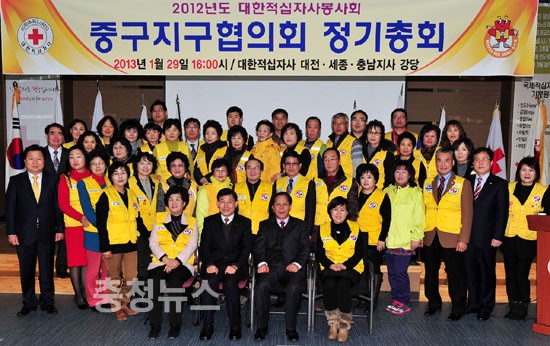 대전광역시 중구(구청장 박용갑)는 29일 대한적십자사 대전·세종·충남지사에서 개최된 ‘대한적십자봉사회 중구지구협의회 정기총회’에 참석하여 2013년도 적십자 특별회비를 전달했다.