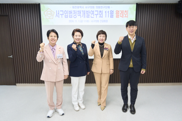 [충청뉴스 박영환 기자] 대전 서구의회 의원연구단체인 서구 입법정책개발연구회는 1일 의회 간담회장에서 11월 월례회를 개최했다고 밝혔다.