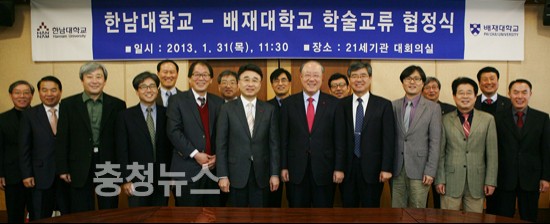 ▲ 배재대-한남대 상호발전 위한 학술교류 협정 배재대학교와 한남대학교는 31일 오전 배재대 21세기관 대회의실에서 김영호 총장 및 김형태 총장 등 양 대학 관계자들이 참석한 가운데 상호 발전을 위한 학술교류 협정을 체결했다. 저작권자 © 충청뉴스 무단전재 및 재배포 금지 문요나 기자 다른기사 보기 기사가 마음에 드셨나요? 충청뉴스 좋은 기사 후원하기 1,000원 3,000원 5,000원 10,000원 30,000원 50,000원 직접입력 비회원 약관동의하기 ※ 소중한 후원금은 더 좋은 기사를 만드는데 쓰겠습니다.