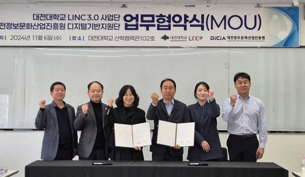 [충청뉴스 이성현 기자] 대전대학교 LINC3.0 사업단은 6일 대학 산학협력관에서 대전정보문화산업진흥원 디지털기반지원단과 드론 산업의 R&D 교육과 산·학·연·군·관 협력체계 구축을 위한 업무협약을 체결했다고 밝혔다.