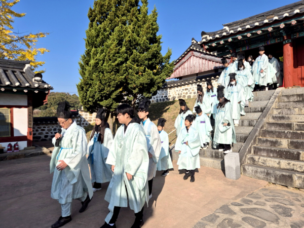 지난 9일에도 봉사단은 문화재 보호 활동에 앞서 면천향교의 역사와 유래, 유교문화를 배우는 시간을 가졌다.