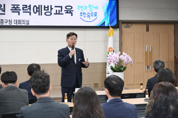 [충청뉴스 박영환 기자] 대전 중구는 11일 구청 대회의실에서 5급 이상 관리자를 대상으로 '4대폭력(성희롱·성폭력·성매매·가정폭력) 및 디지털성범죄 예방 특별교육'을 실시했다고 밝혔다.