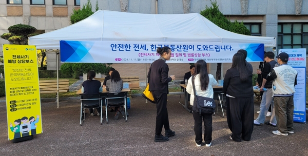 한국부동산원 박승규 국장과 부순응 부장은 목원대 사회과학대학 광장에 전세사기 예방 상담부스를 마련해 전세사기 사례 및 유형, 피해 예방을 위해 임대차 계약 시 주의할 사항 등을 안내했다.