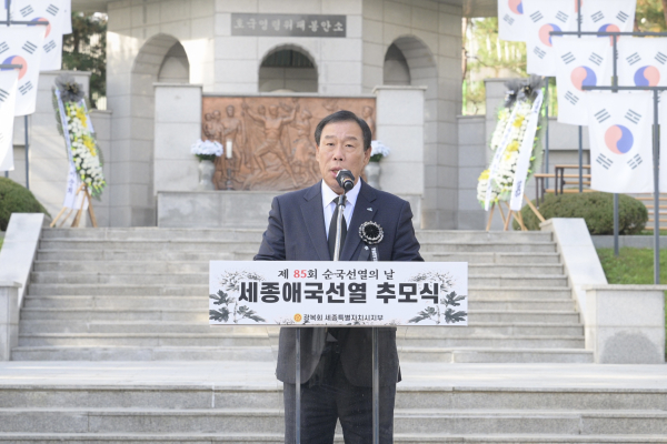최민호 시장은 “추모식을 통해 우리는 순국선열들의 숭고한 삶과 정신을 다시 한번 기억할 것”이라며 “시민 여러분도 순국선열의 희생을 되새기고 나라사랑하는 마음을 다지시길 바란다”고 말했다.