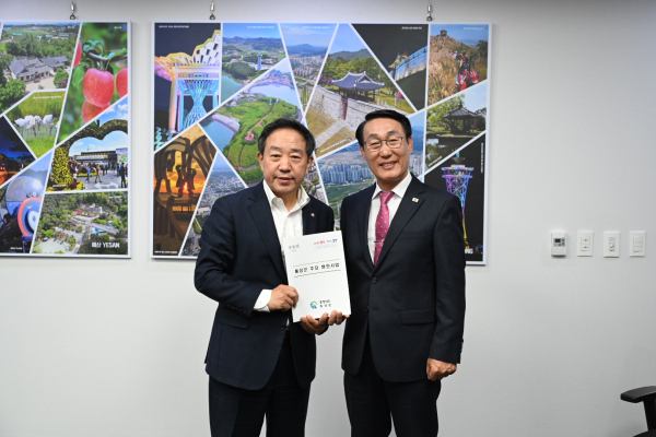 특히 ‘충남의 제2 금강산’으로 불리는 용봉산의 관광 경쟁력 강화를 위해 국산 목재를 활용한 가족형 숲 놀이시설 조성의 필요성을 설명했다. 또한 충남도와 협력하여 추진 중인 충남혁신도시 과학영재학교와 충남대학교 내포캠퍼스 설립에 대해서도 내포신도시의 미래 발전을 위한 필수 사업임을 강조했다.