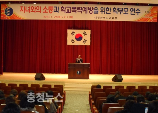 대전광역시교육청(교육감 김신호)은 7일 시교육청 대강당에서 초ㆍ중ㆍ고 학부모를 대상으로 자녀와의 소통과 학교폭력예방을 위한 학부모 연수를 실시했다.