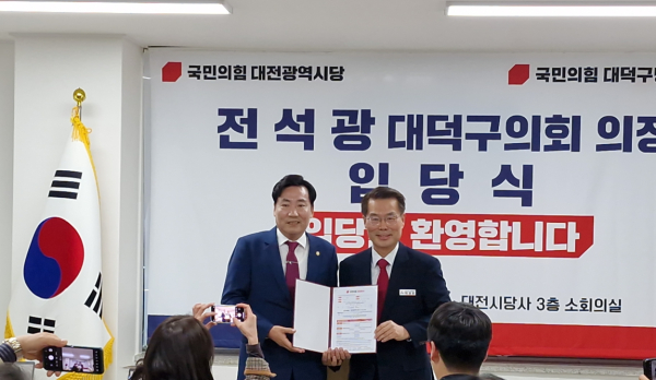 [충청뉴스 박영환 기자] 더불어민주당을 탈당해 무소속이었던 전석광 대전 대덕구의회 의장이 국민의힘에 입당했다.