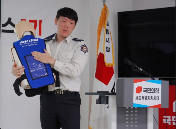 3주차 강의 1교시에는 세종소방서 소방행정과 교육담당관 신진규 소방장이 강사로 나서 ‘응급처치 교육’을 강의했다.