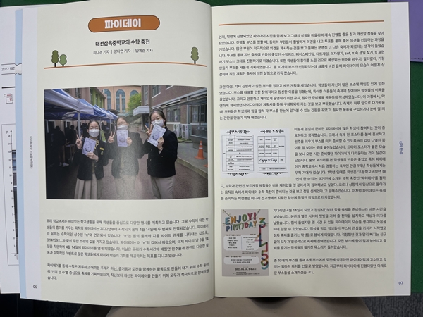 대전삼육중학교는 수학 교육 활동을 더욱 널리 알리고자 ‘수학 매거진 신의 한수’를 발간하여 학생들이 수학에 대한 흥미를 가질 수 있도록 다양한 콘텐츠를 제공하고 있다. 수학 프로젝트의 우수 산출물과 탐구 보고서, 수학 관련 행사 및 활동, 또래 멘토링 등의 내용을 담아 지난 2년간 발간하였으며, 올해도 새로운 내용을 추가하여 제작 중이다.