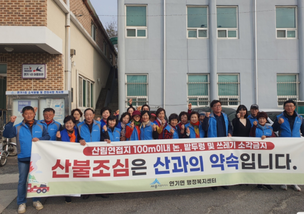 장경환 연기면장은 “소중한 산림과 주민의 생명·재산을 보호할 수 있도록 전 면민이 산불 감시원이 되어 우리면 산불 예방에 적극적으로 참여해 달라”고 당부했다.