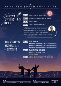 [충청뉴스 최형순 기자] 세종시립도서관이 오는 29일 조치원읍 행복누림터(복합커뮤니티센터) 1층 소공연장에서 ‘흥미진진! 우주항공기술의 미래’를 주제로 채연석 명사의 강연을 연다.