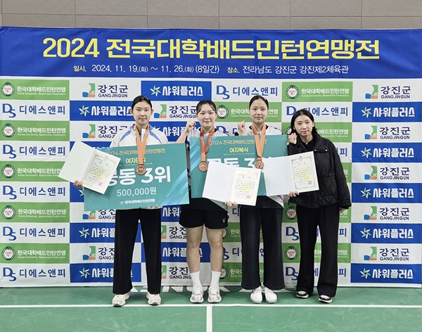 [충청뉴스 이성현 기자] 대전과학기술대학교는 스포츠건강관리학과 여자 배드민턴부가 최근 열린 ‘2024 전국대학배드민턴연맹전’에서 단체전과 개인전에서 모두 입상하며 뛰어난 실력을 입증했다고 26일 밝혔다.