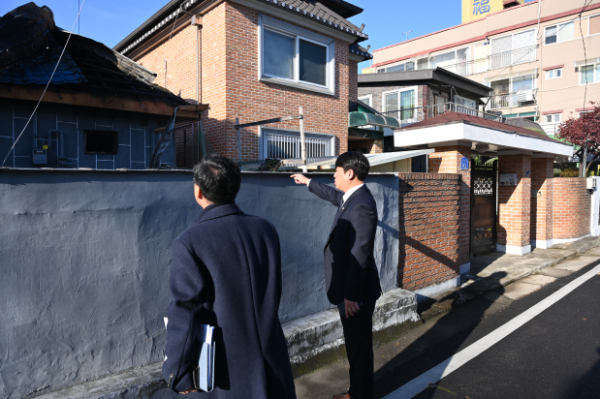 화재 사건 현장을 점검에 나선 오은규 중구의장(사진 오른쪽)