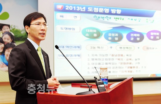 충남도(지사 안희정)가 올해 도정 주요목표와 의지, 일 잘하는 조직을 만들겠다는 각오를 도민에게 밝히는, 전국적으로 유례가 없는 행사를 마련했다.