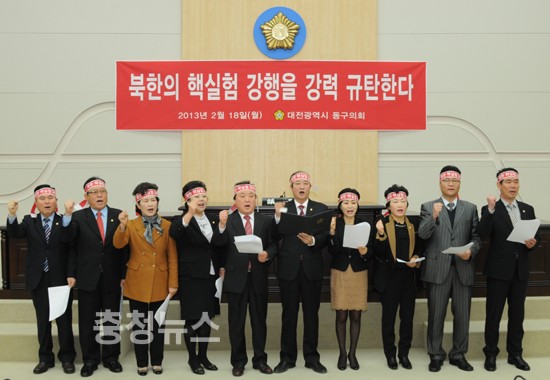 대전 동구의회(의장 김종성)는 18일 본회의장에서 북한의 핵실험 규탄 결의 대회를 개최했다.
