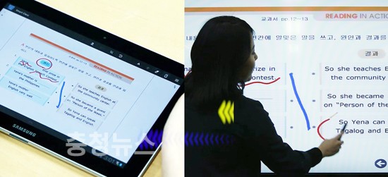 ▲ 모바일로전송되는 전자칠판 활용 수업