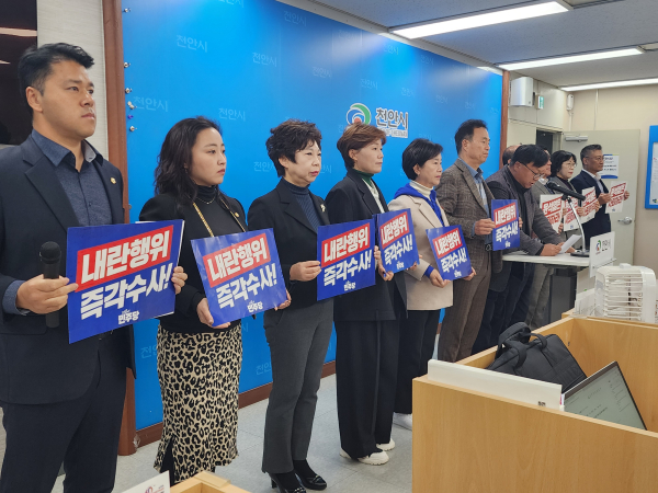 [충청뉴스 박동혁 기자] 더불어민주당 소속 천안시의회 의원들이 5일 윤석열 대통령을 향해 “지금 즉시 자진 사퇴하고, 역사의 심판을 받길 바란다”고 밝혔다.